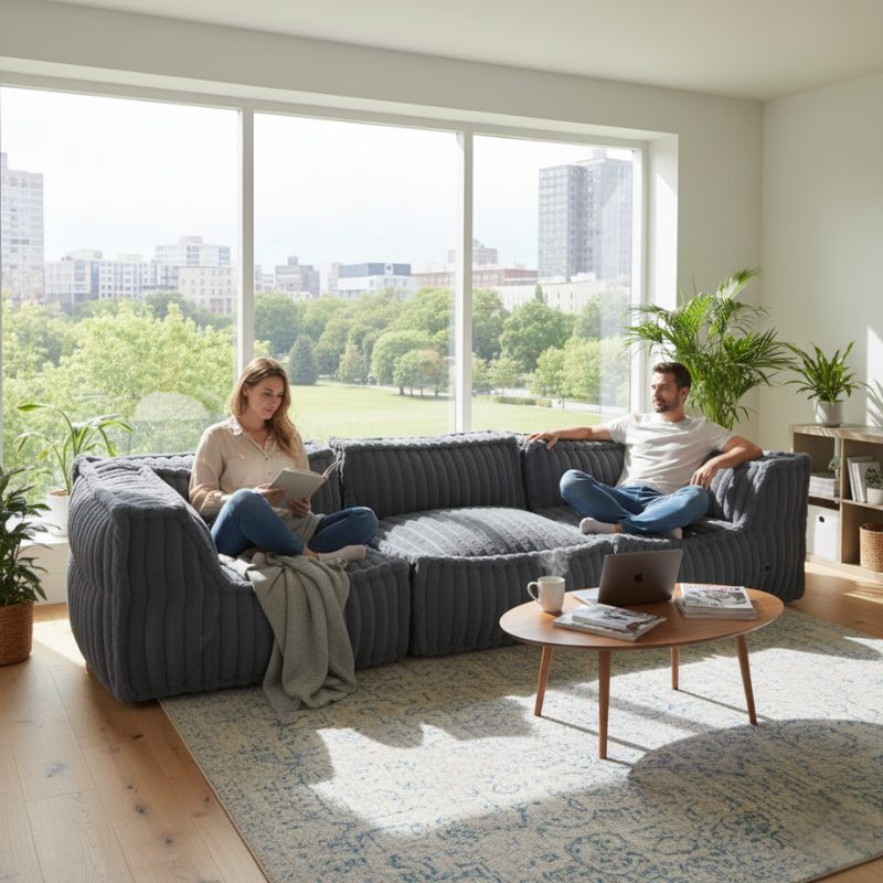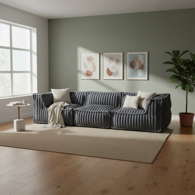 Pratique, évolutif et incroyablement doux, ce canapé modulable s’adapte à chaque espace et transforme le quotidien en un moment de détente permanente.