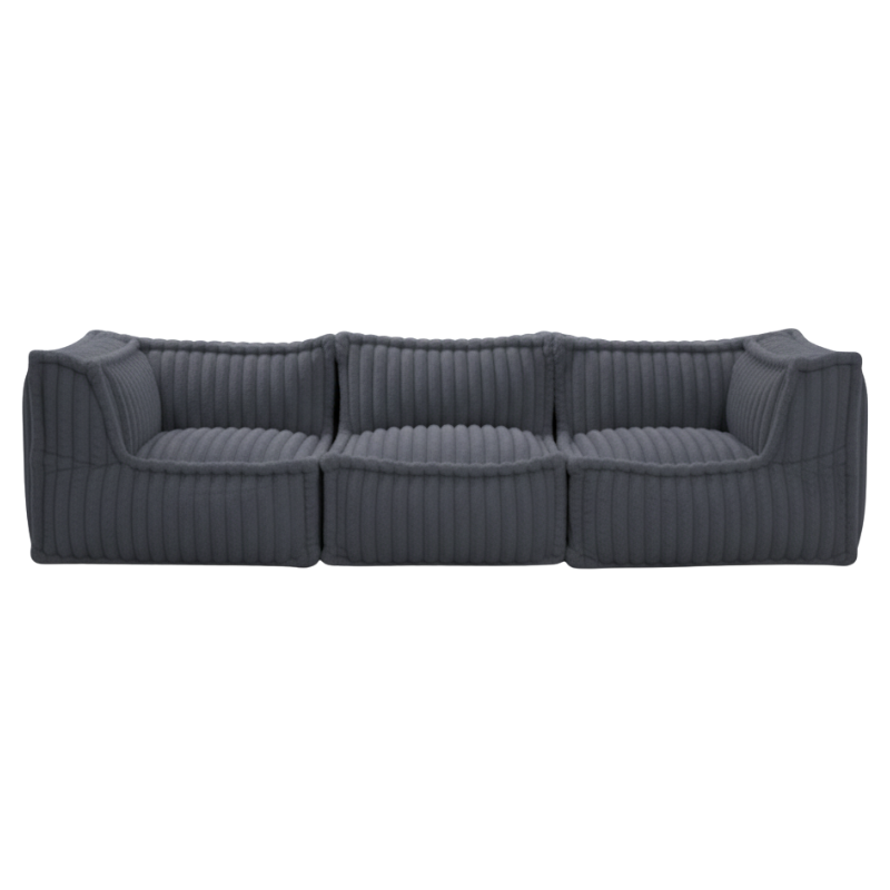 Composé de deux modules d’angle et d’un module central, il permet de créer un grand canapé trois places au moelleux incomparable. Chaque assise est garnie de mousse déchiquetée de polyuréthane, issue de chutes neuves revalorisées en France. Cette mousse souple et dense épouse la forme du corps, offrant un confort d’assise durable tout en soutenant une fabrication écoresponsable et locale.