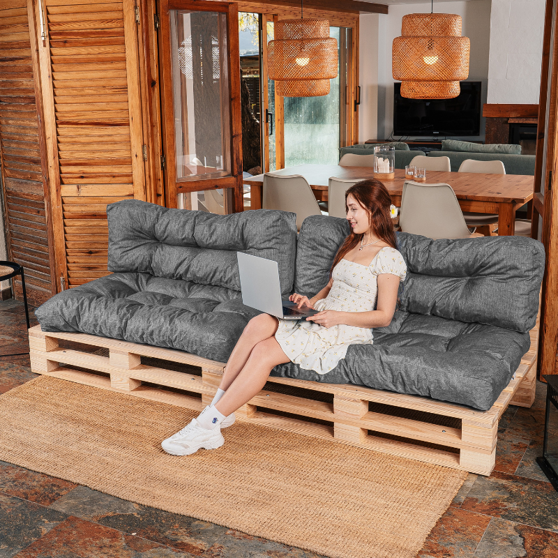 • CONFORTABLE : Détendez-vous pleinement avec nos coussins pour palettes. Notre rembourrage en mousse vous offre une assise douce pour des moments de détente incomparable dans votre jardin, balcon ou terrasse. Nos coussins sont parfaits pour agrémenter vos canapés et fauteuils conçus à partir de palettes européennes, ainsi que pour toute autre pièce de mobilier où le confort prime.