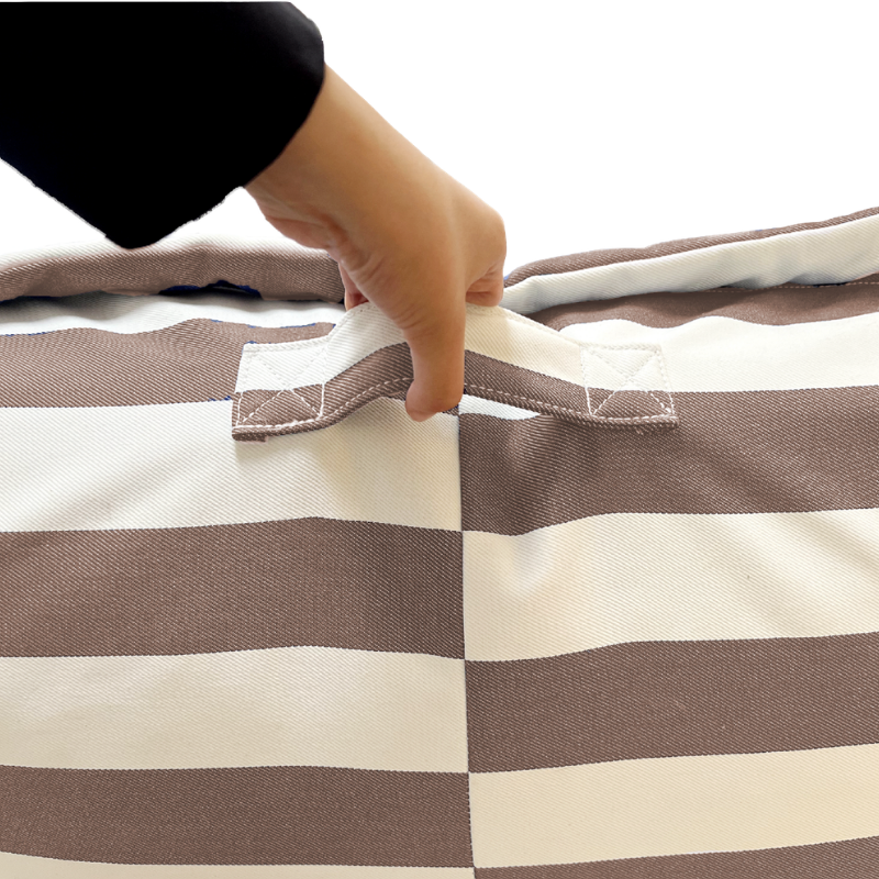 Comme tous nos produits, ce coussin rayures est généreusement rembourré avec notre mousse déchiquetée signature. Oubliez les poufs qui s'affaissent !