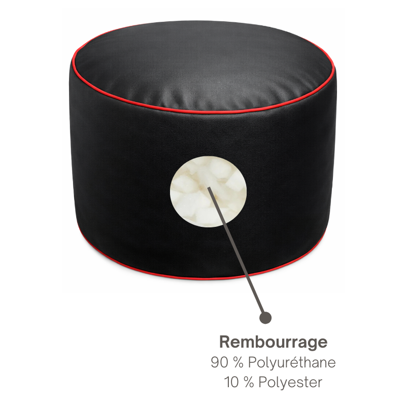 REMBOURRAGE FABRIQUÉ EN FRANCE : Ce repose-pieds est garni de mousse de polyuréthane déchiquetée, transformée dans notre atelier français à partir de chutes neuves. Une solution durable qui garantit une assise homogène et un confort dans le temps.